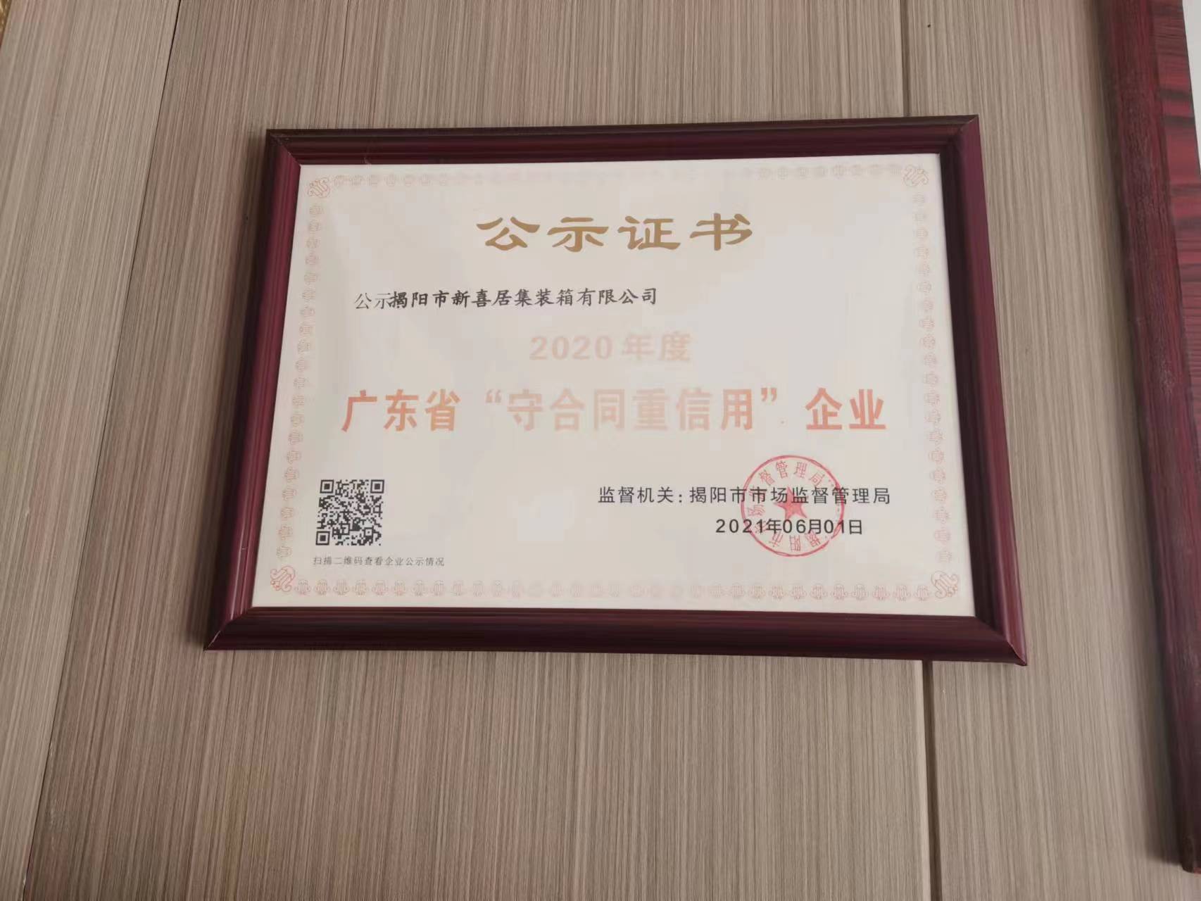 廣東省守合同重信用企業(yè)證書